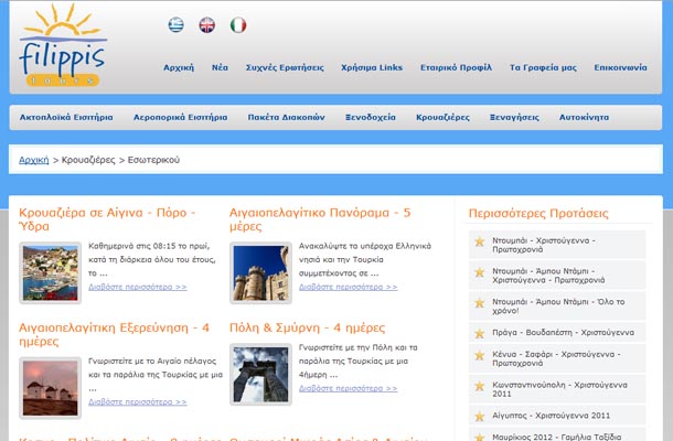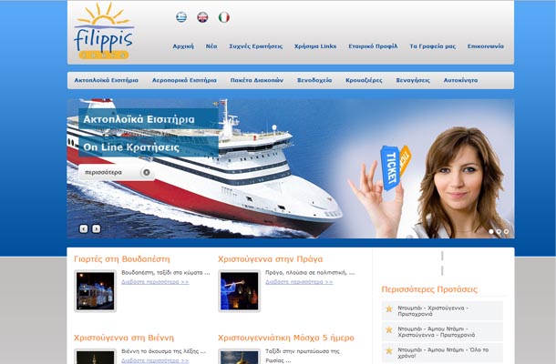 Η εταιρεία Filippis Tours προσφέρει τις υπηρεσίες της από το 1982 και δέχεται καθημερινά δεκάδες επισκέπτες, καθώς η έδρα της βρίσκεται στο κυριότερο σταυροδρόμι του Ελληνικού τουρισμού, το λιμάνι του Πειραιά, παρόλα αυτά η παρουσία της στο διαδίκτυο επιβεβαιώνει την προσπάθεια για αναβάθμιση των υπηρεσιών της.